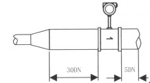 4. 测压孔和测温孔的设备规划。被测管道需求设备温度和压力变送器时,测压孔应设置在下流3-5D处,测温孔应设置在下流6-8D处,见图(七)。D为外表工称口径,单位:mm
