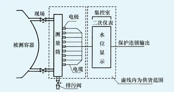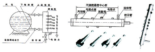主要用于锅炉汽包、高低加热器、除氧器、蒸发器、直流锅炉 起动分离器、水箱等的水位测量。本装置由测量筒和二次仪表组成,采用数码显示和汽红、水绿双色发光二极管显示液位。测量筒的电极在水中对筒体的阻抗小,在汽中对筒体的阻抗大。 随着水位的变化,电极在水中的数量产生变化,转换成电阻值的变化,传送到二次仪表,从而实现水位的显示、 报警、保护联锁等功能。